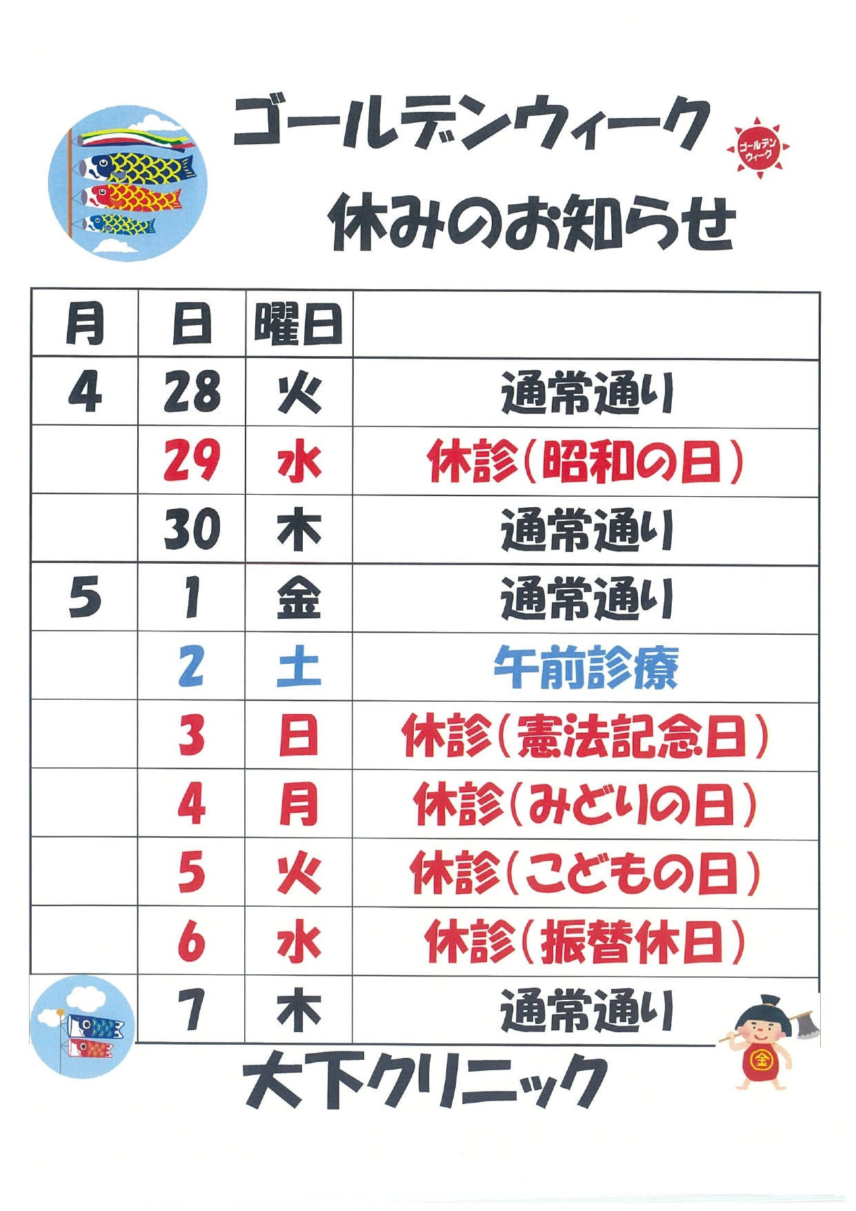 ゴールデンウィークのお休みをお知らせ致します。